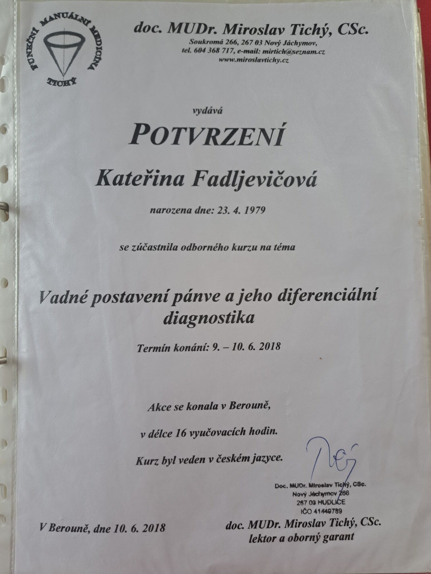 - Funkční manuální medicína MUDr. Tichého - páteř, pánev
